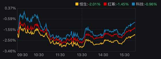 具体来看,恒生指数盘中跌2.78%一度失守25000点,,权重股普遍走弱,长和(-4.47%)、汇丰控股(-3.68%)等蓝筹股拖累指数。恒生科技指数盘中跌超2.2%一度失守4800点,午后在半导体板块反弹带动下跌幅收窄,商汤-W(+1.79%)、地平线机器人-W(+1.6%)逆势上涨。