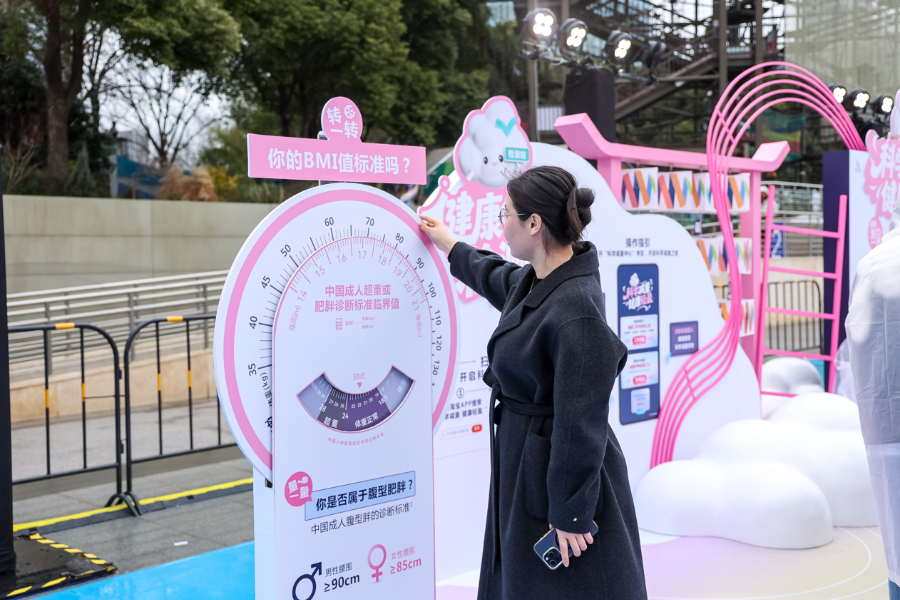 启动仪式结束后,与会专家领导参与体验了诺和诺德与阿里健康联合举办的“科学减重 健康轻盈”主题科普快闪活动。本次科普快闪活动打造了集科普、互动、体验于一体的健康打卡空间,精心营造了一系列融合减重特色的区域,除了食物噪音解密、轻盈哈哈镜互动等趣味环节,还推出全场打卡集章、结伴而行领好礼等福利活动,让公众在轻松互动中纠正减重认知误区、了解肥胖危害与科学减重方法,吸引众多上海市民参与,让科学减重的理念在沉浸式体验中深入人心。