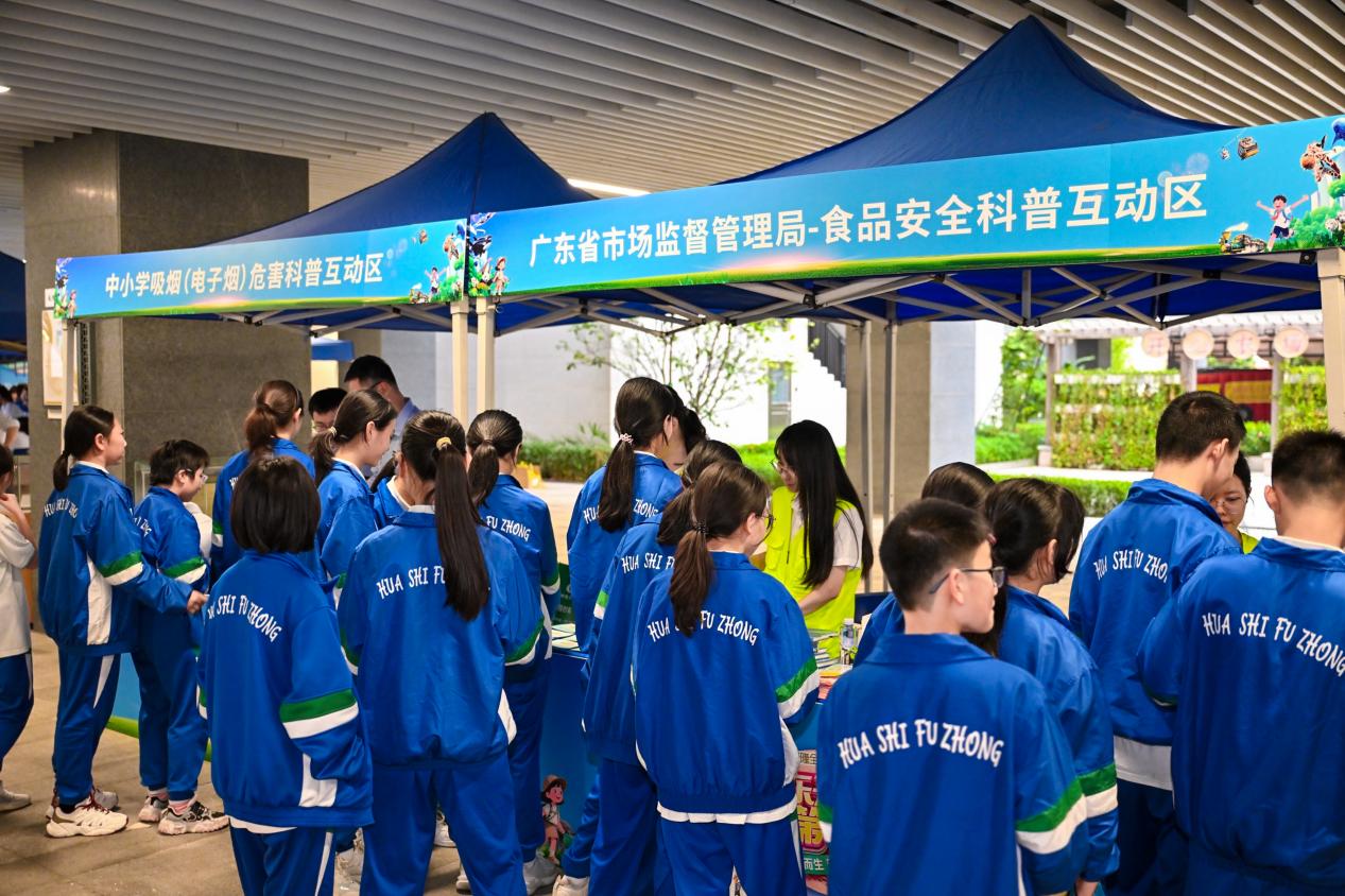 主会场之外,华附校园变身“安全教育主题乐园”,设置了长隆度假区动物科普、退役军人、食品安全、金融、消防、青少年禁烟等不同安全主题的互动摊位和知识展板。同学们穿梭于摊位之间,在游戏、阅读中将安全知识“刻入DNA”。