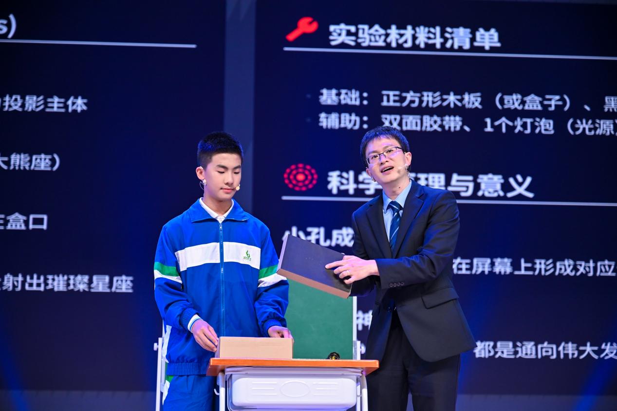 从生命的奇迹,到苍穹的奥秘,人类的视线从未被边界束缚。月亮为什么会跟着我们走?如何亲手制作星座投影仪?华南师范大学附属中学地理高级教师、天文竞赛指导教师林程吉老师带来分享《宇宙探索 筑梦航天》,讲述了从仰望星空到航天强国的宇宙探索历程。他鼓励同学们保持好奇,用善于发现的眼睛、探索的视角观察身边平常的景象——或许下一个奇迹的线索,就藏在一次抬头、一次追问、一次亲手实践之间。