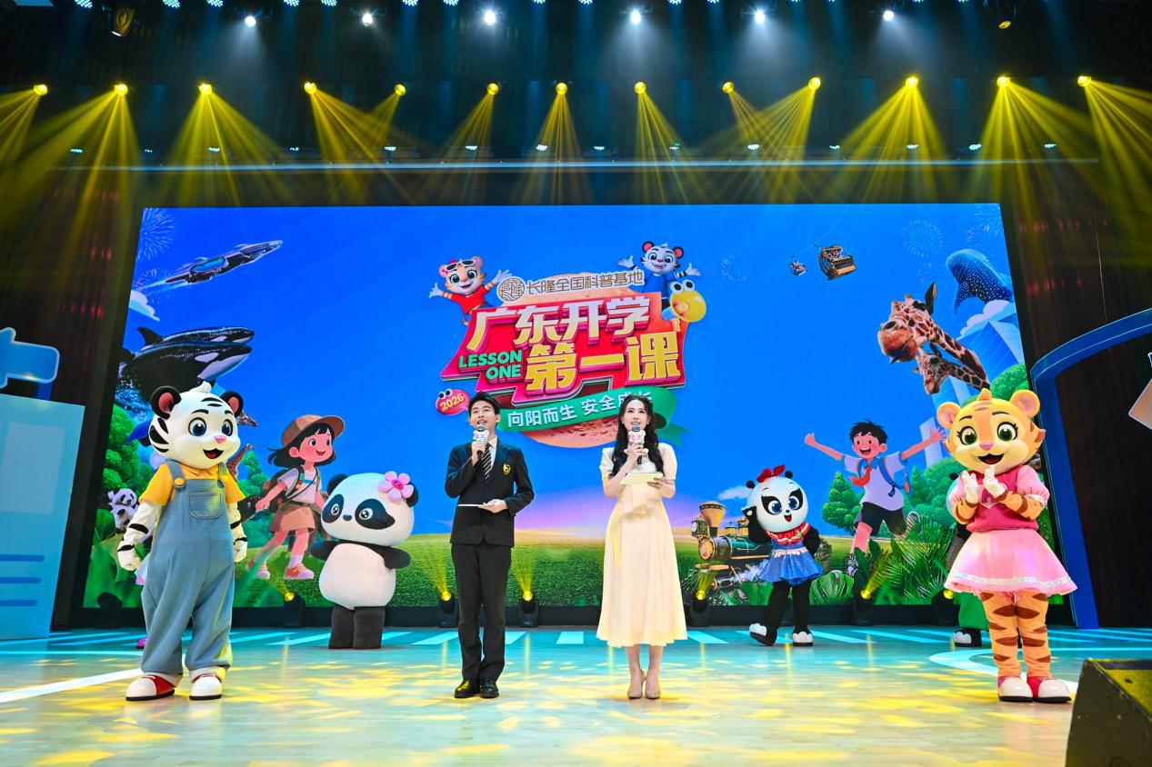 2026广东开学第一课(春季)由全国科普教育基地——长隆度假区独家冠名合作,由广东经济科教频道主办,广东省教育厅、广东省退役军人事务厅、广东省市场监督管理局、国家金融监督管理总局广东监管局、广东省公安厅交通管理局、广东省消防救援总局、广东省关心下一代工作委员会、广东省卫生健康委员会、中国人民银行广东省分行、南方财经全媒体集团指导,广州市教育局、广州市国家安全局、广州市烟草专卖局协办,并得到长隆全国科普教育基地、广东省校园安全教育与管理协会、华南师范大学附属中学、招商银行股份有限公司广州分行的大力支持。