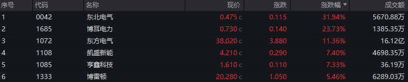 电气设备概念走强,东北电气涨超31%,博耳电力、东方电气、凯盛新能等涨幅居前。
