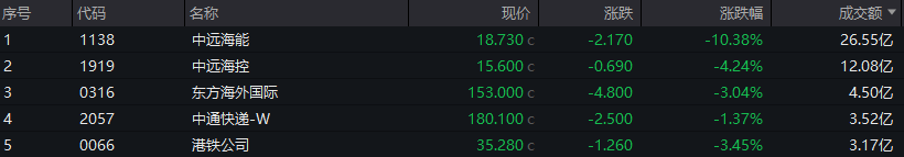 受消息影响,港股航运和能源股遭遇显著抛压。中远海能、太平洋航运等多股跌超10%,中远海能盘中一度重挫22%。