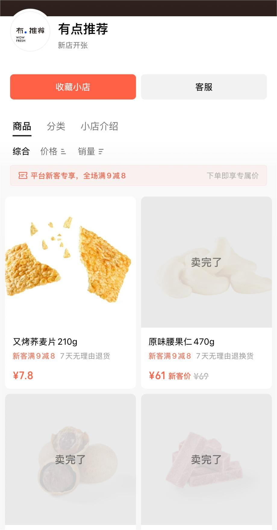 蓝鲸记者在其微信小店上看到,除了又烤荞麦片以外,其余产品均已显示“卖完了”。