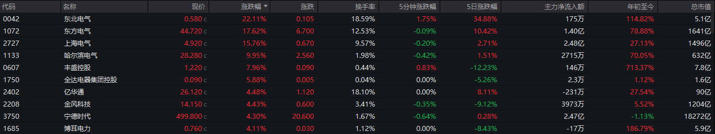 电气设备股大涨,东方电气涨超17%,上海电气涨超15%,哈尔滨电气涨近10%。