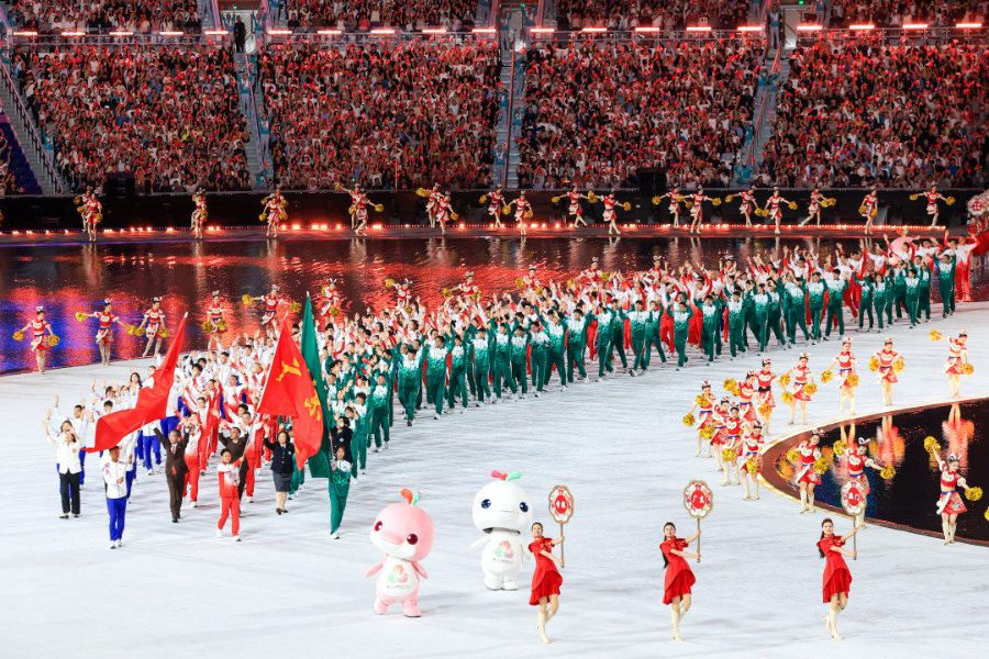 十五运会开幕式上,粤港澳三地运动员入场