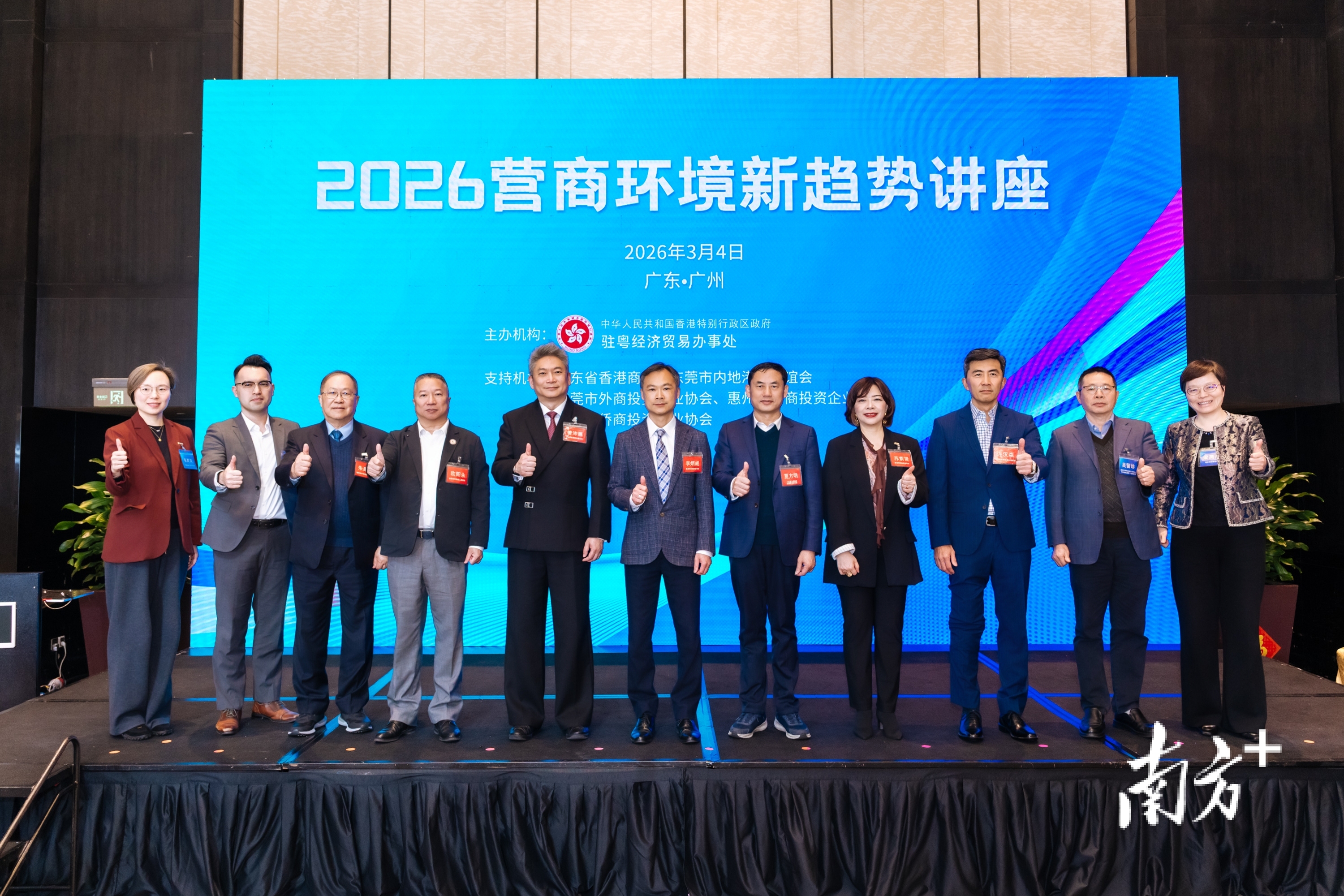 3月4日下午,由香港特别行政区政府驻粤经济贸易办事处(下称“驻粤办”)主办,广东省香港商会、东莞市内地港人联谊会、东莞市外商投资企业协会、惠州市外商投资企业协会、惠州市侨商投资企业协会作为支持机构的“2026营商环境新趋势讲座”在广州举办。来自香港中联办广东联络部、商会及企业的超230名代表出席。