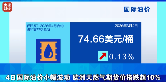 4日国际油价小幅波动 欧洲天然气期货价格跌超10%