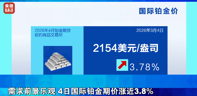 需求前景乐观 4日国际铂金期价涨近3.8%