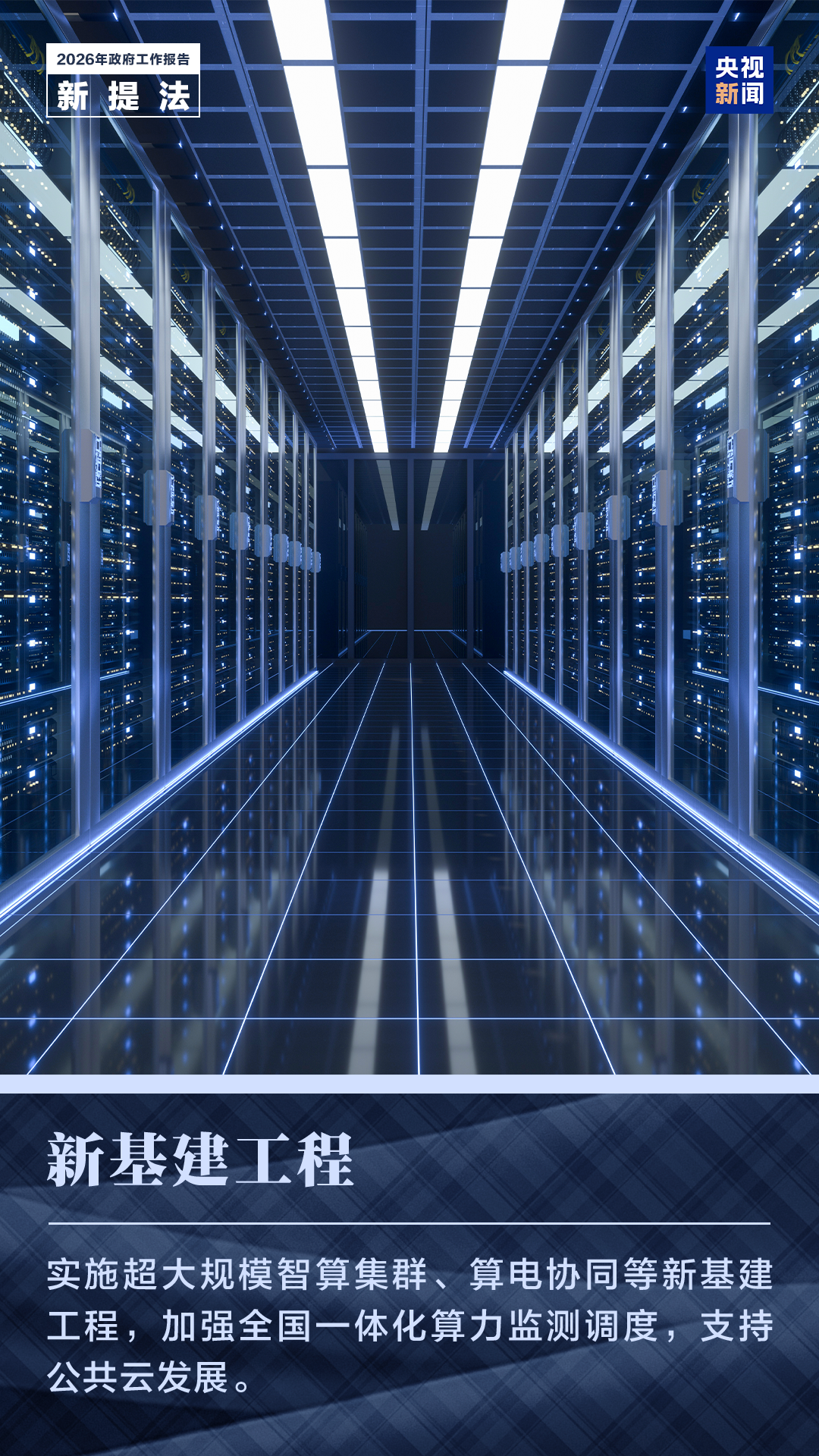 在“打造智能经济新形态”方面,政府工作报告中提出,“实施超大规模智算集群、算电协同等新基建工程”。“新基建工程”是一个新词,背后释放了怎样的政策动向?