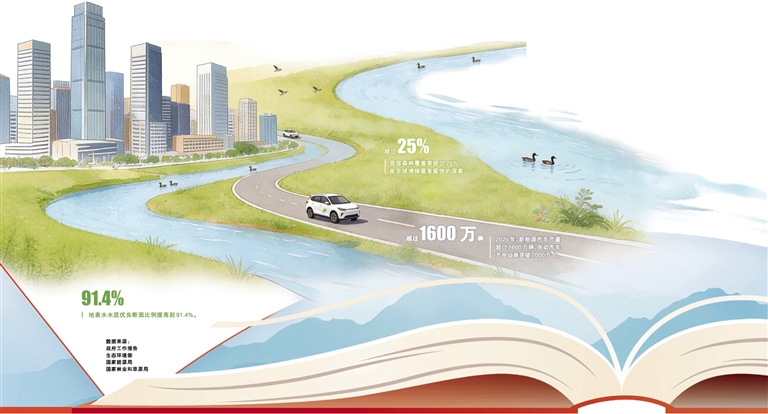 我国森林覆盖率超过25%,是全球增绿最多最快的国家。