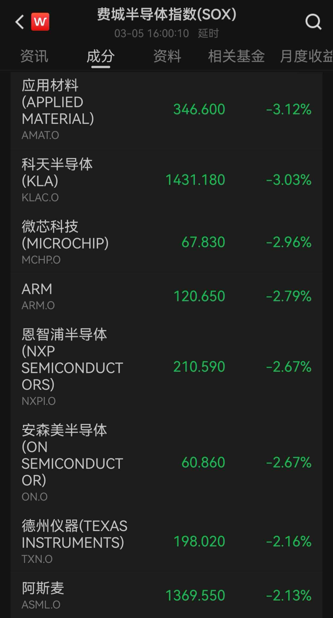 当地时间3月5日,欧美股市主要指数全线下跌,法国CAC40指数、英国富时100指数、德国DAX指数、道琼斯工业指数均跌超1%。