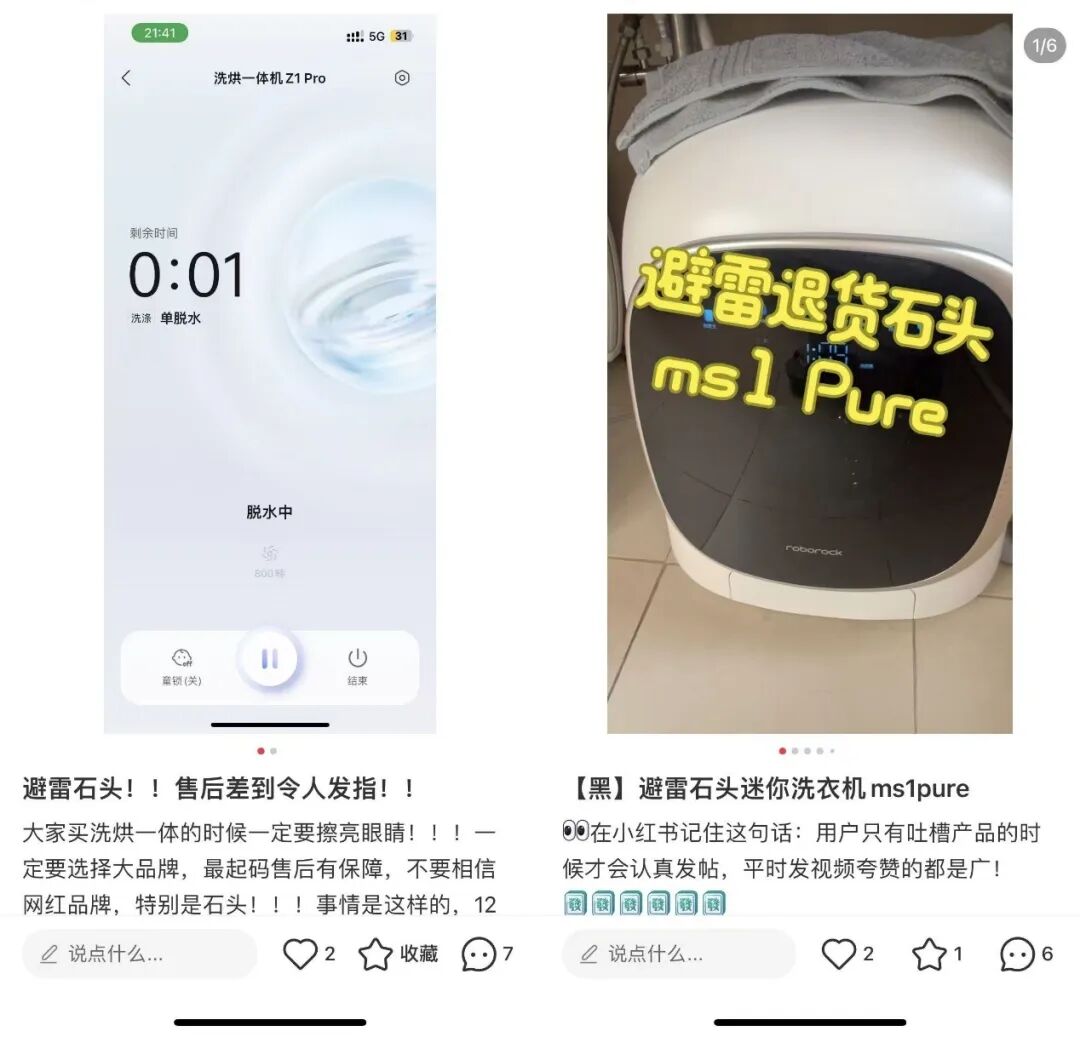在这背后,石头科技的洗衣机确实负面缠身。在社交平台上,许多消费者吐槽其洗衣机频繁出现故障问题,售后服务体验差等,甚至有消费者表示“不到一个月就发生故障”。