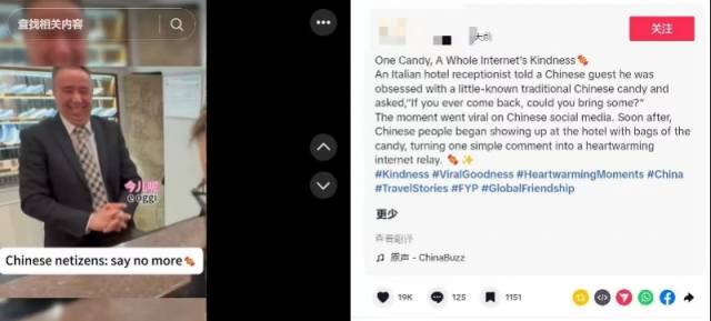 中国游客接力送糖引发海内外网友的关注。