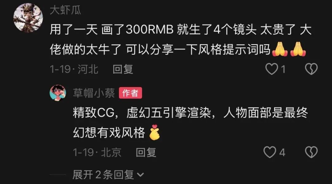 “我也问了一些专业的朋友,这是不是太初级了?人家告诉我,专业软件你学习成本太高,现在的凑合能用就行。”不够专业,又想做出更好的效果,显然意味着更多的工作量与更高的积分消耗。