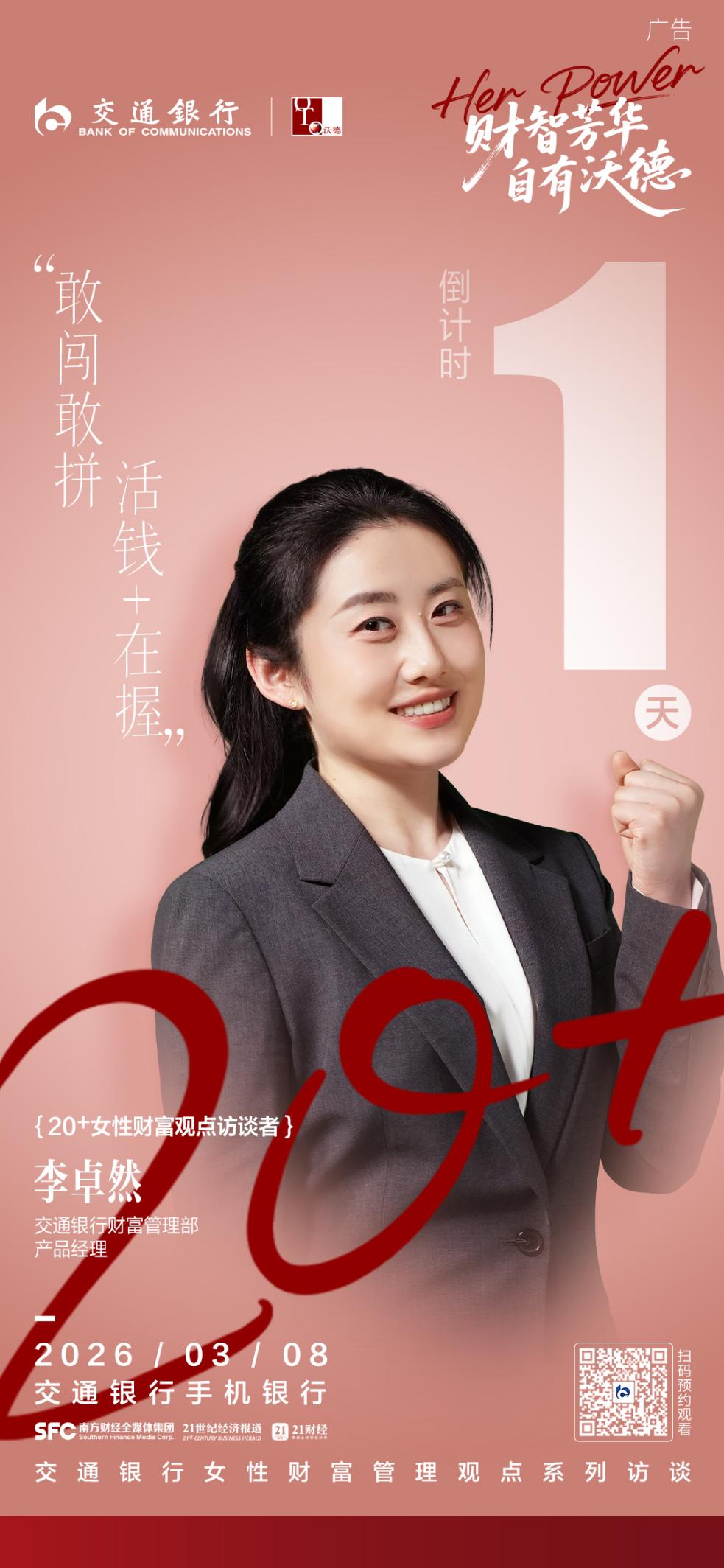以专业致敬力量,以守护陪伴时光。三八妇女节将至,我们即将推出一组暖心视频,镜头里有20+的她的青春姿态,也有50+、40+、30+女性的多样光芒和专属财富智慧。敬请期待!