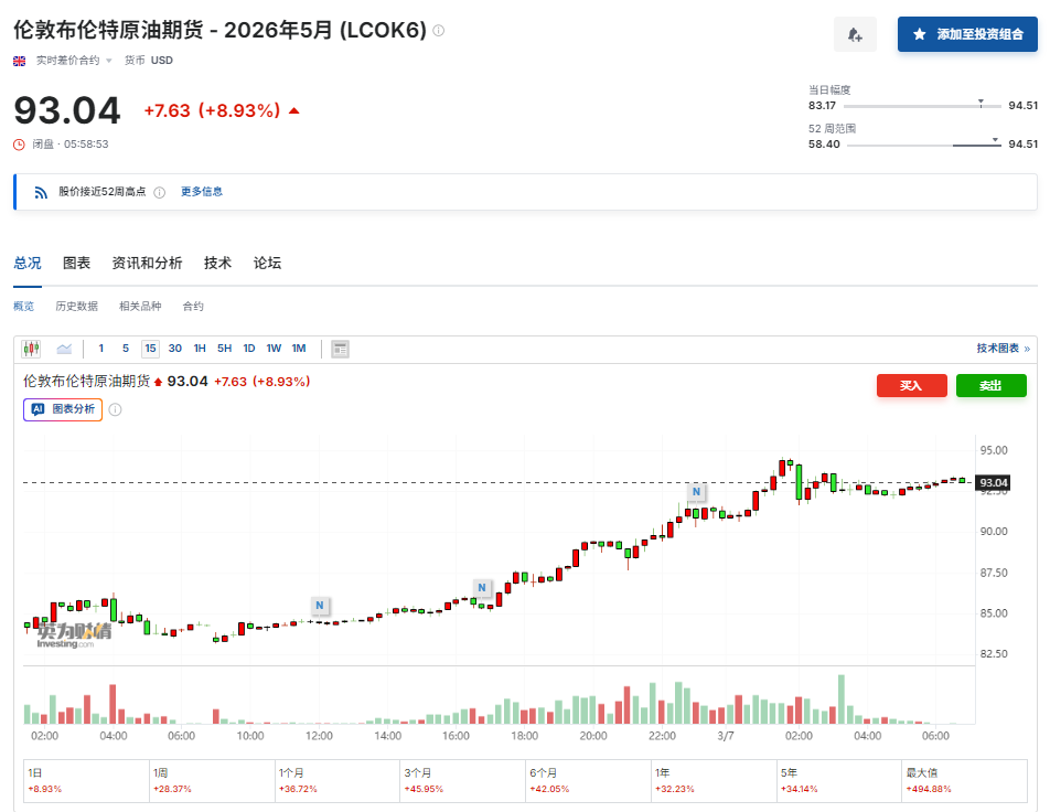 美伊战火已持续接近一周,而“全球最关键石油咽喉要道”——霍尔木兹海峡几乎停滞,中东地区的石油生产也遭到了巨大影响。在此背景下,国际油价本周一路飙升,美油、布油分别创自1983年和1991年有记录以来的最大周涨幅。