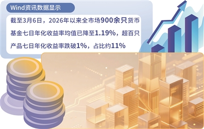 进一步梳理发现,年内已披露200余份货币基金管理费适用费率调整公告,其中相当比例属于合同约定的自动调整。而触发费率动态调整机制的核心原因在于货币基金收益率下行。Wind资讯数据显示,截至3月6日,2026年以来全市场900余只(不同份额分开计算)货币基金七日年化收益率均值已降至1.19%,超百只产品七日年化收益率跌破1%,占比约11%。