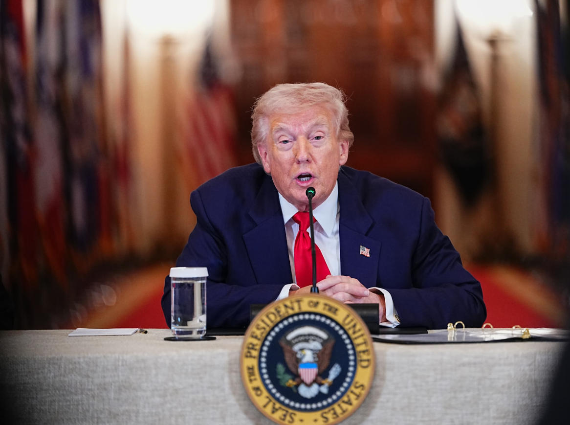 当地时间9日晚,美国总统特朗普在佛罗里达州迈阿密的特朗普多拉尔高尔夫俱乐部举行新闻发布会。