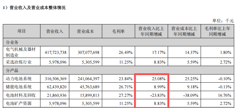 在动力电池与储能电池领域,宁德时代常年保持优势地位,并且营业收入主要来自前述两项业务。