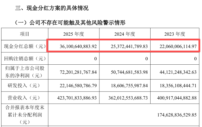 若宁德时代完成2025年度利润分配预案,2025年度累计派发的现金分红总额将达361.01亿元,占2025年归母净利润的50%。