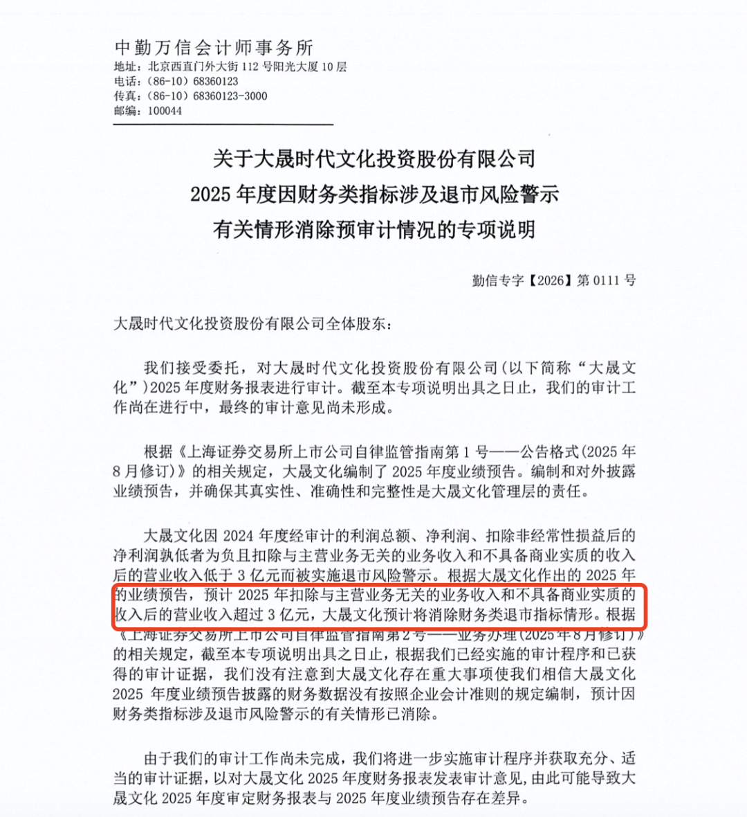 不过*ST大晟提醒,公司2025年年度报告审计工作正在进行,最终财务数据以公司正式披露的经审计后的2025年年度报告为准。