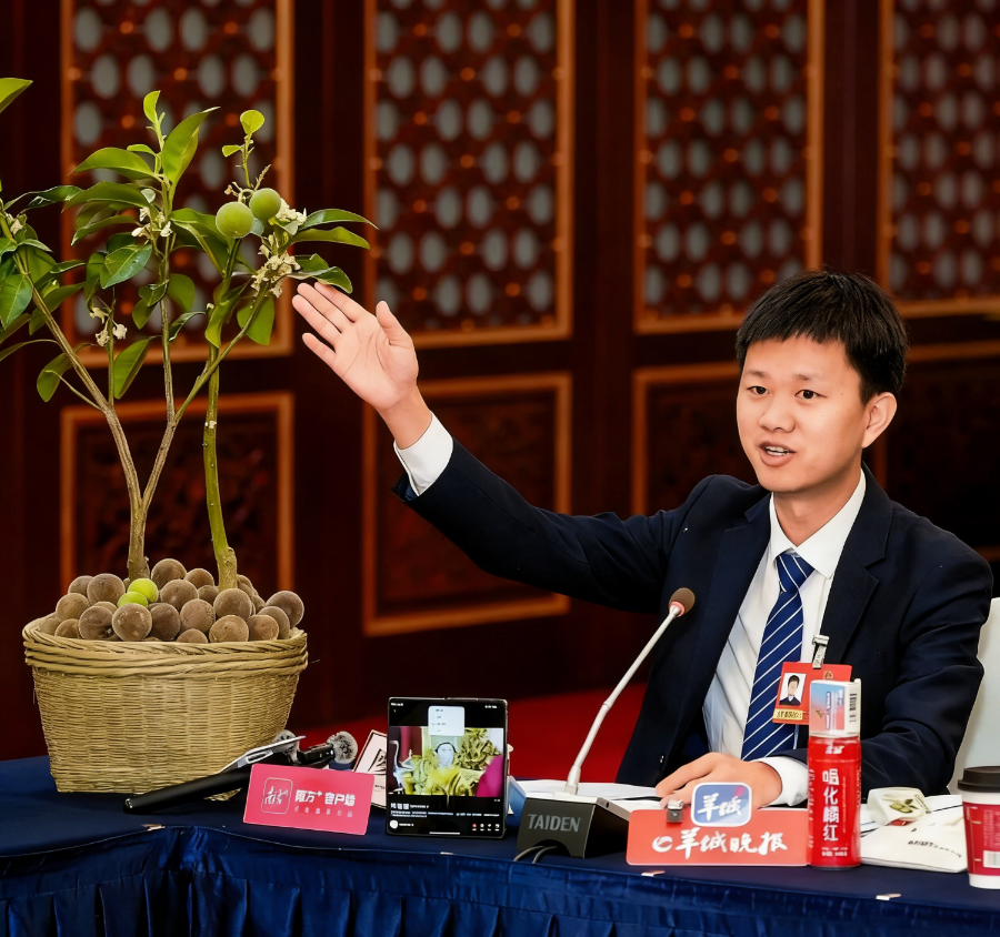 这已不是廖志略第一次带化橘红“出圈”。去年两会他带着一株开花树苗,相关短视频点击量超2000万。今年他带的树苗已经挂果。