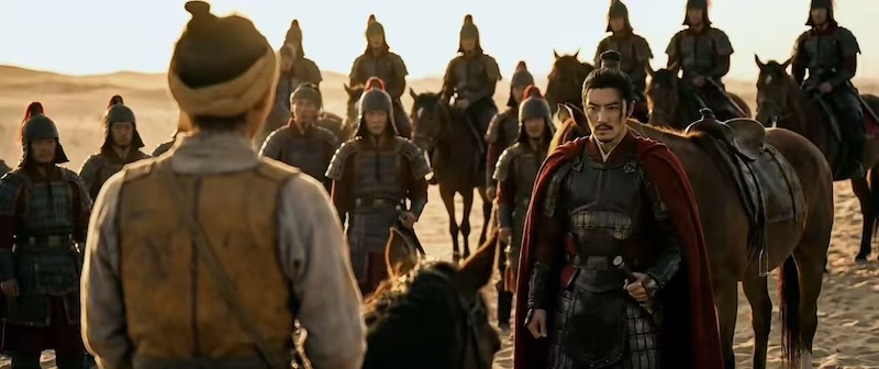 在该剧画面中,少年将军霍去病策马扬鞭,大漠与铁甲寒光交织。当镜头对准一匹战马的眼睛,能看到棕色鬃毛随风翻涌,睫毛上凝着细碎雪花。霍去病跨身上马,率大军追逃兵时,镜头流畅拉远,千军万马潮涌般前进,刀身反射着夕阳的金光,沙尘下的场景恢弘辽阔。