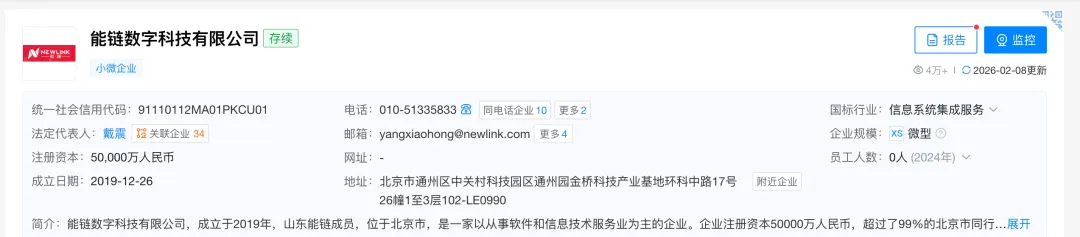 公开资料显示,团油公司主体为车主邦(北京)科技有限公司,是能链集团旗下的一款互联网加油服务产品。天眼查显示,能链数字科技有限公司成立于2019年12月,注册资本5亿元,法定代表人戴震。