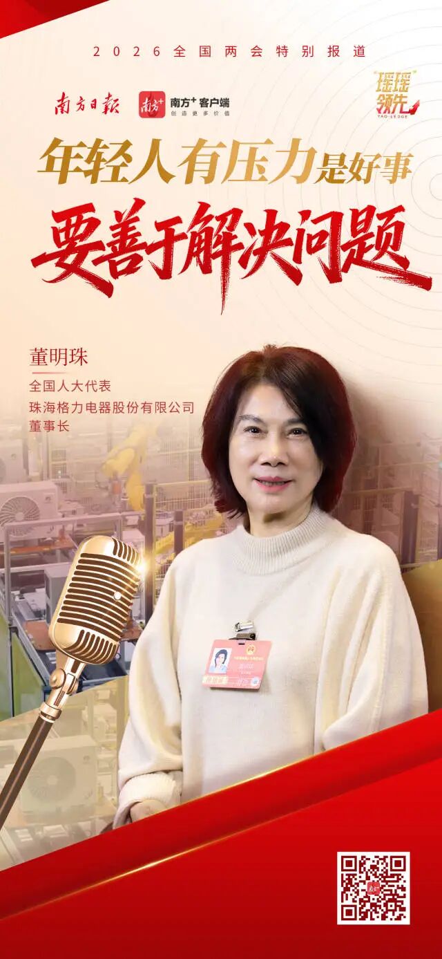 今年全国两会期间,全国人大代表、珠海格力电器股份有限公司董事长董明珠再次接受南方+客户端“瑶瑶领先”栏目专访,畅谈发展数智经济、制造业与服务业协同发展,也回应了关于打造企业家个人IP、“董明珠健康家”的初衷。