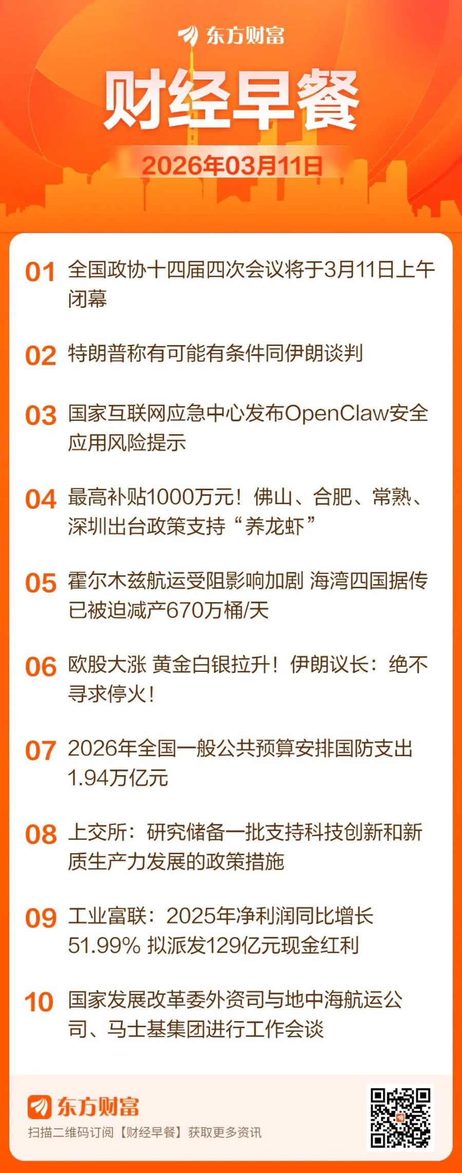 十四届全国人大四次会议各代表团11日上午举行全体会议,审议全国人大常委会工作报告、最高人民法院工作报告、最高人民检察院工作报告。下午,各代表团举行代表小组会议,审议关于政府工作报告、“十五五”规划纲要、年度计划、年度预算的四个决议草案;召开主席团第三次会议。11日上午,全国政协十四届四次会议在人民大会堂举行闭幕会。