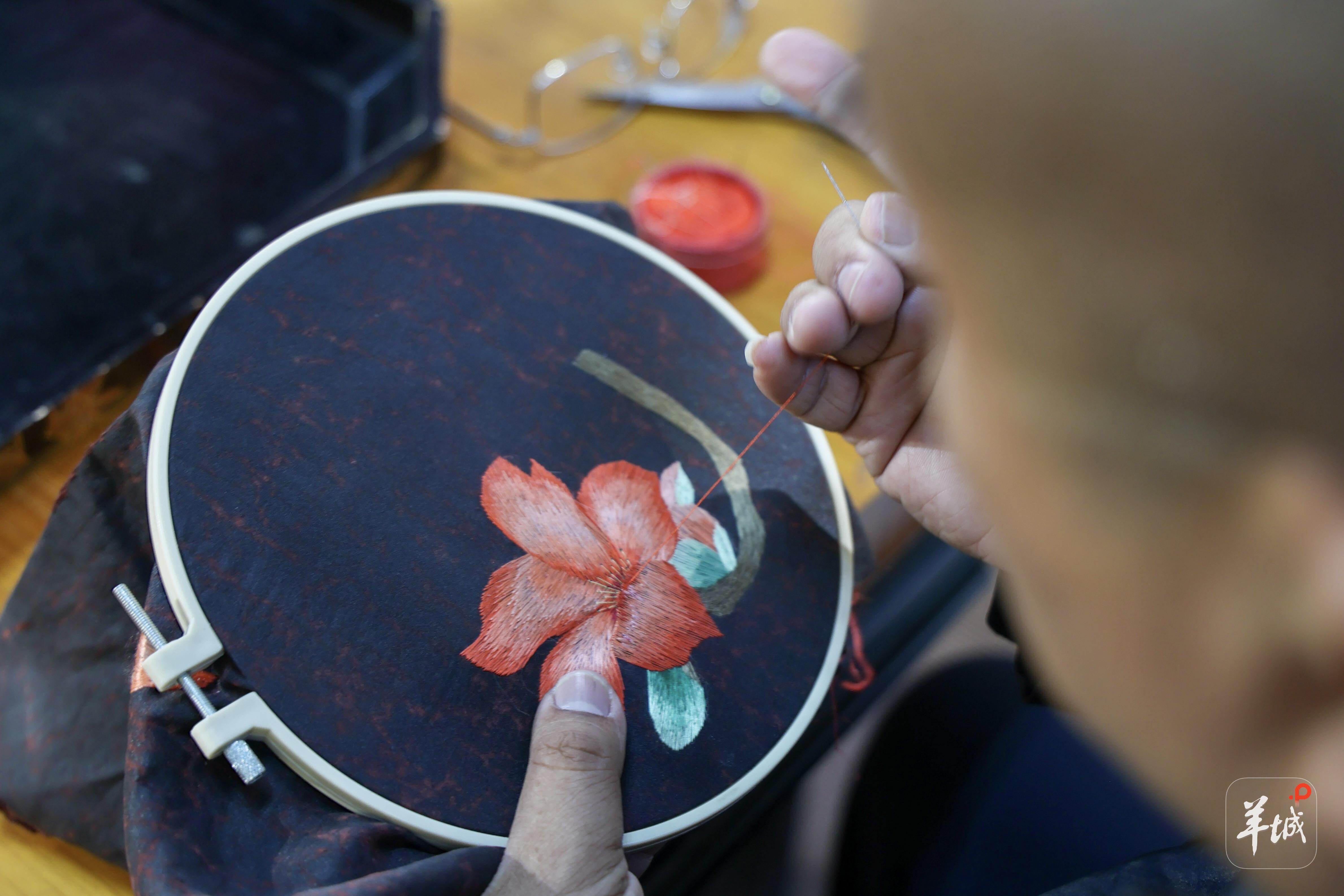 飞针走线间,林俊亿制作出了精美的广绣木棉。刘畅 摄