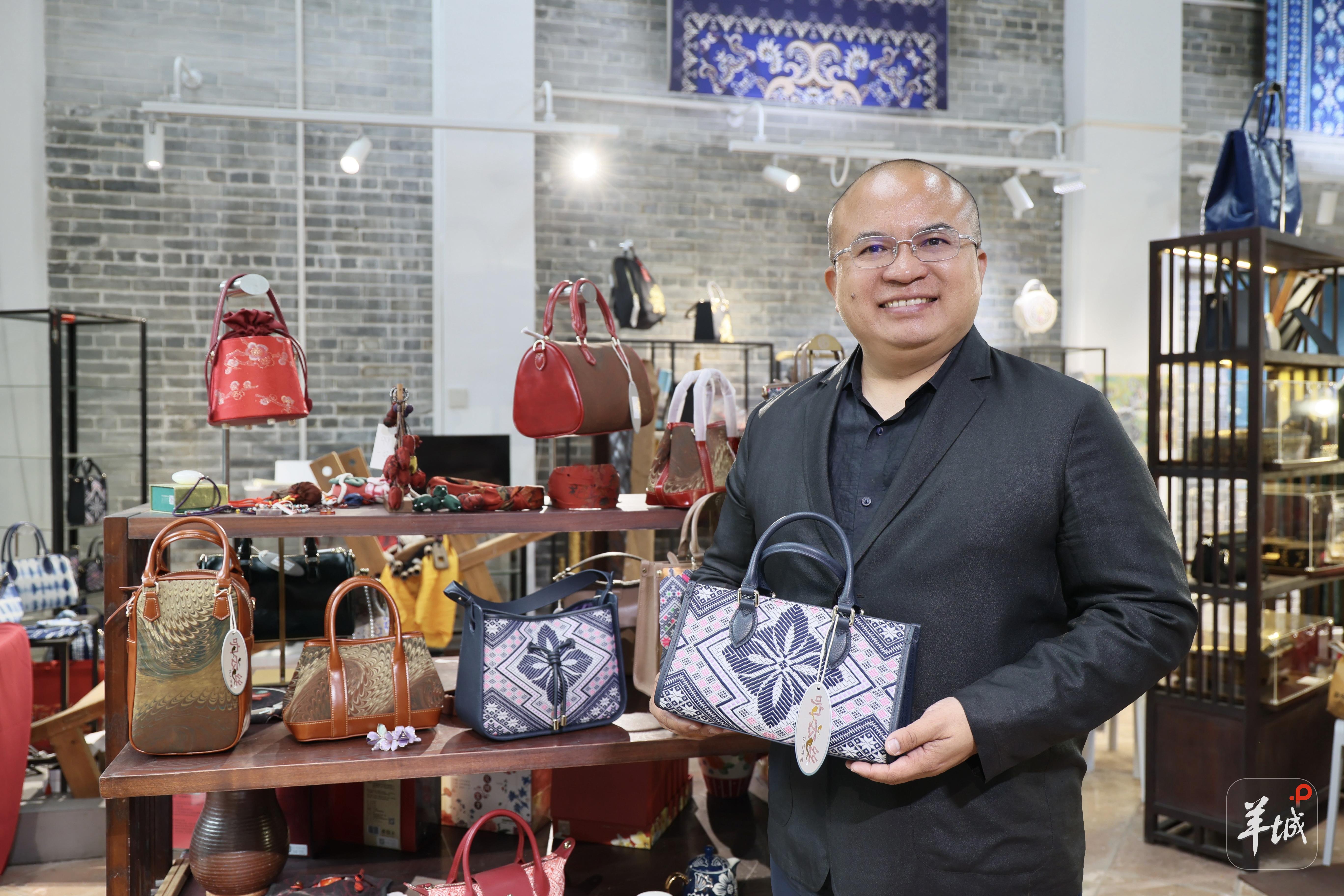30多年前,这位“70后”设计师从台湾来到广州创办皮具工厂。如今,他的工作室里摆满了融合非遗元素的背包、发饰——广绣的木棉、侗绣的蜘蛛纹、太鲁阁织锦和壮锦融合的壮太锦……说起这些设计,国家一级皮具设计师林俊亿就会讲起图腾的寓意和手艺人的创作。背包里,藏着的不只是穿戴与日常。