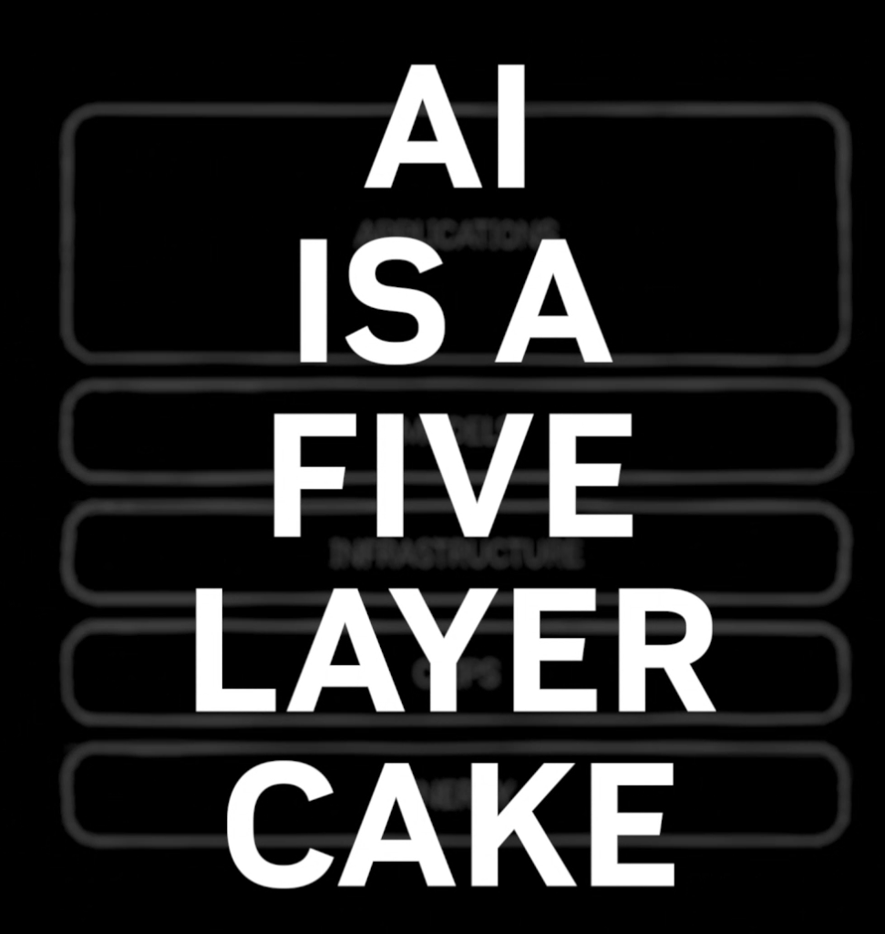 黄仁勋将AI产业架构形象地比作“五层蛋糕”:能源→芯片→基础设施→模型→应用。