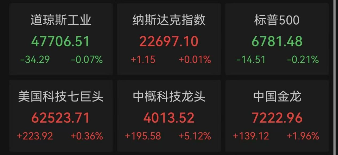 当地时间3月10日,美股三大股指 收盘涨跌不一。美股科技板块表现稳健,美股科技七巨头多数上涨;中概股整体走强,纳斯达克中国金龙指数与中概科技龙头指数均大幅上涨,蔚来大涨超15%。