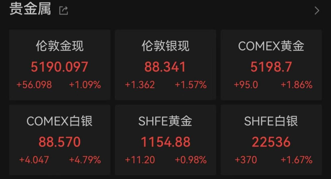 贵金属方面,黄金、白银价格上涨。Wind数据显示,截至北京时间3月11日5时40分,伦敦金现涨1.09%,COMEX黄金期货涨1.86%。伦敦银现涨1.57%,COMEX白银期货大涨4.79%。