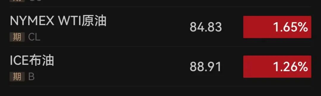 11日,国际油价小幅上涨,截至发稿,WTI原油期货涨1.65%,报84.83美元/桶,布伦特原油期货涨1.26%,报88.91美元/桶。