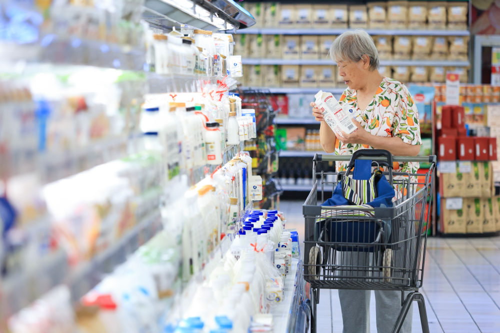 消费者在南京一家超市选购牛奶。新华社发(苏阳 摄)