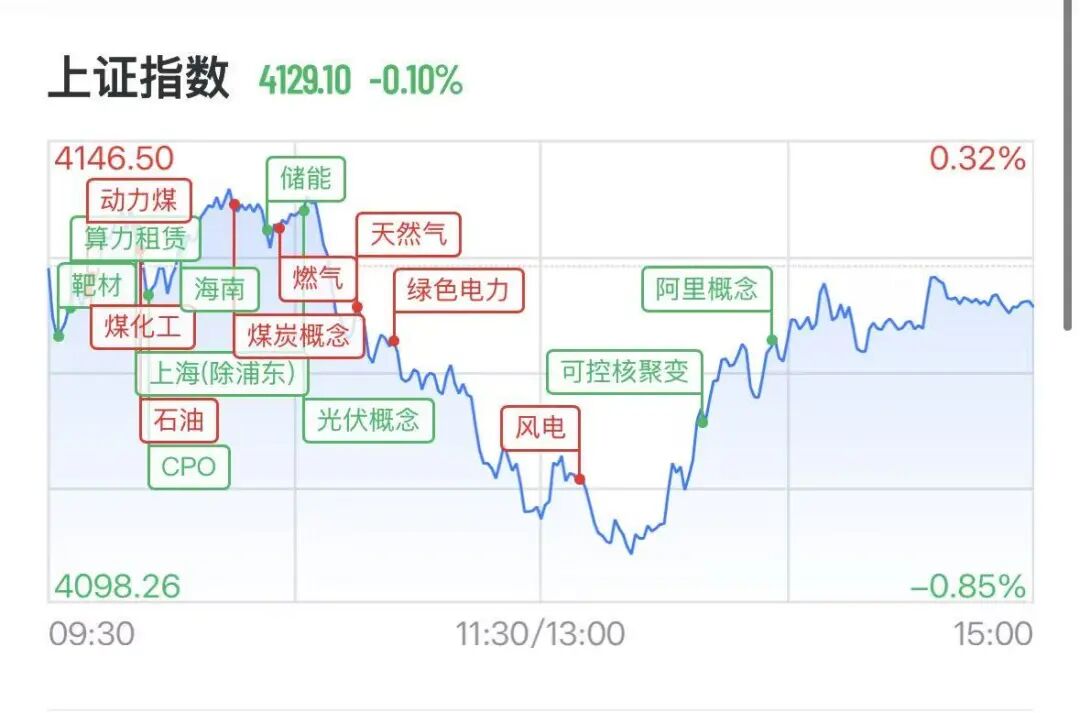 下跌方面,军工、能源设备、机械、贵金属板块跌幅靠前,商业航天、算力硬件、太空光伏、人形机器人、稀有金属、AI应用概念股纷纷回调。