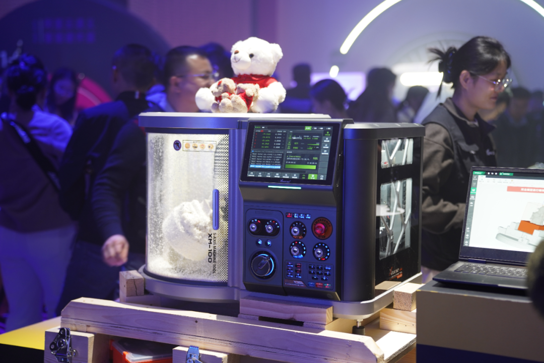 据介绍,这款设备拥有20余项软硬件发明专利,在细节处的“微创新”更是贴合桌面使用场景:隐藏式折叠刀库适配小型设备,固定电机加减速器的换刀方式规避传统模式的噪音问题,即将完成自主研发的专用芯片让无线测头实现两年免换电池……