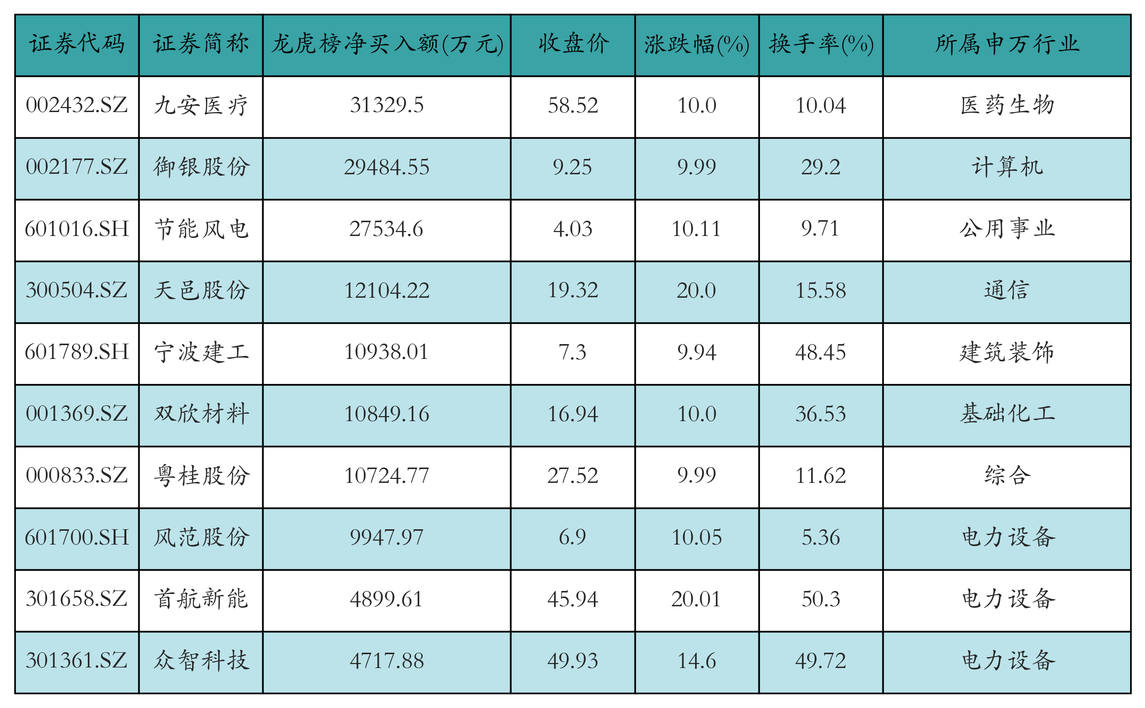 昨日龙虎榜营业部净买入额前10详情见下表: