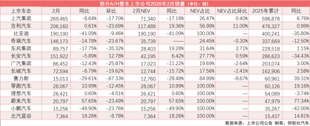 财联社记者统计了14家A/H股上市车企在1-2月份的销售情况,其中有9家车企实现同比增长,占比超过六成,并且3家车企2月海外销量超过国内市场。