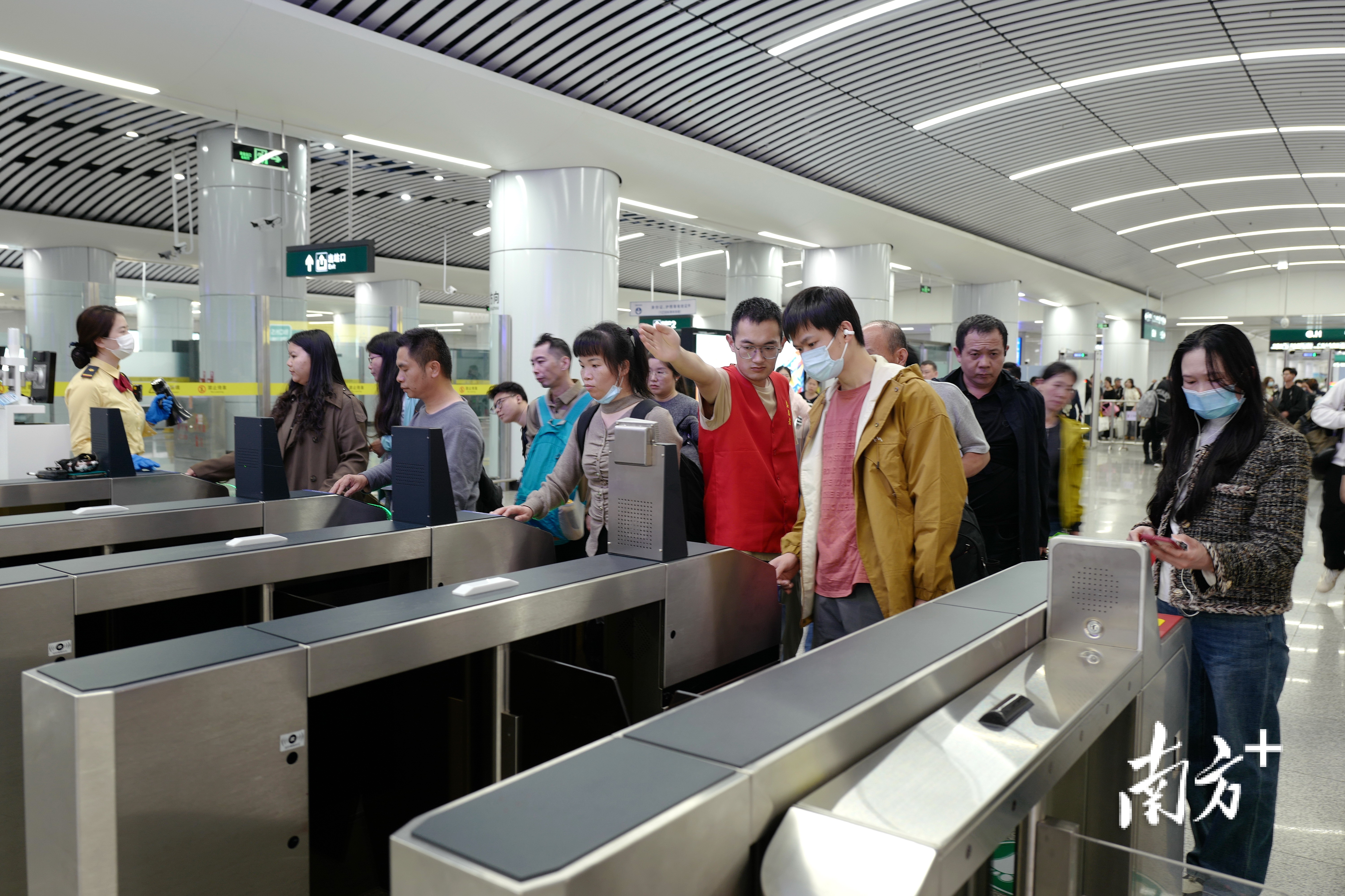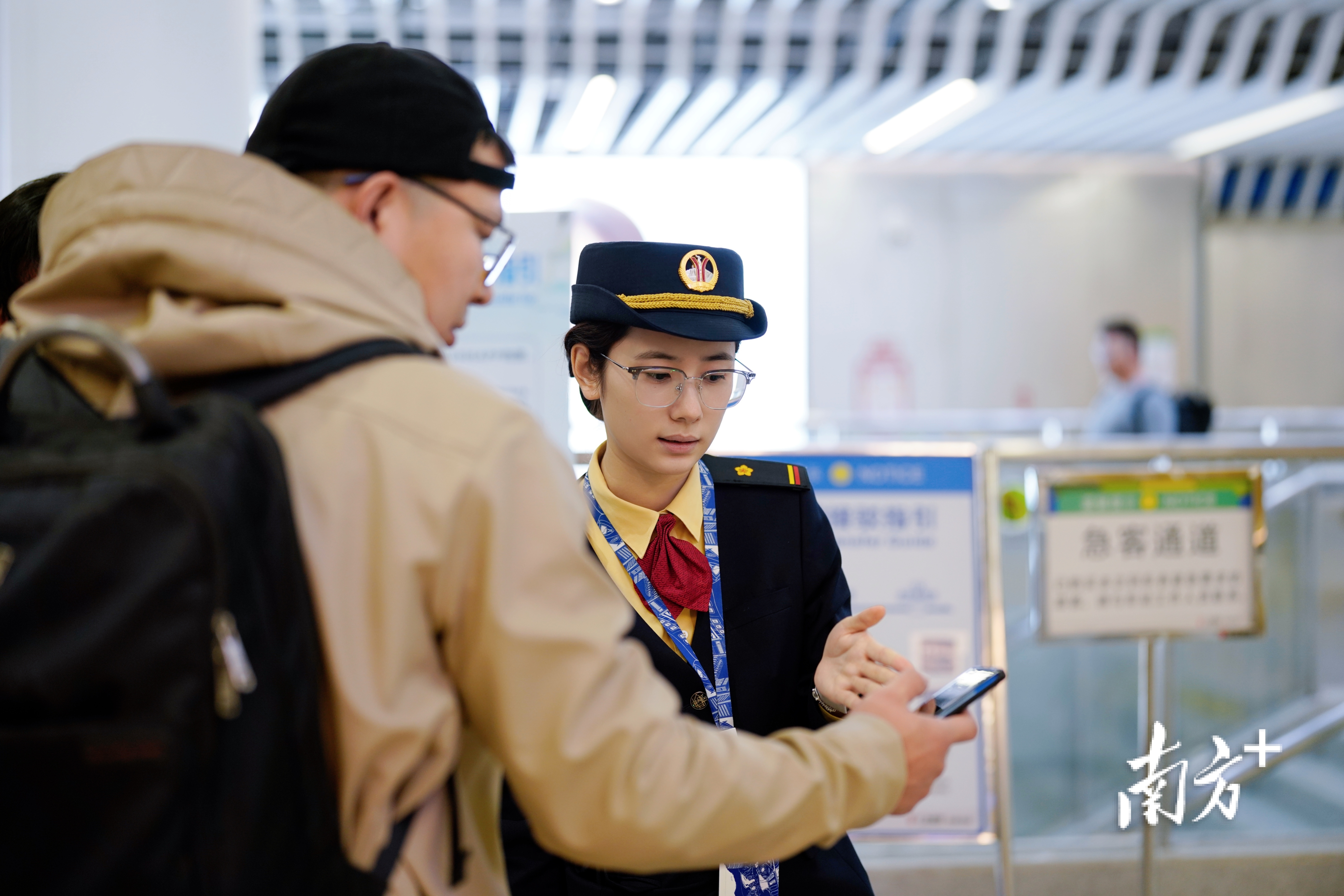 在优化运力的同时,广东城际持续提升服务品质,在花都站、广州白云站、肇庆站、佛山西站、惠州北站等5个站点与国铁实现安检互认,无需出站换乘、无需重复安检,进一步提升旅客换乘效率;在新线开通及节假日期间上线明星服务队和志愿者,为旅客提供爱心药箱、便民雨具及行李协助等暖心服务,营造温馨旅途。