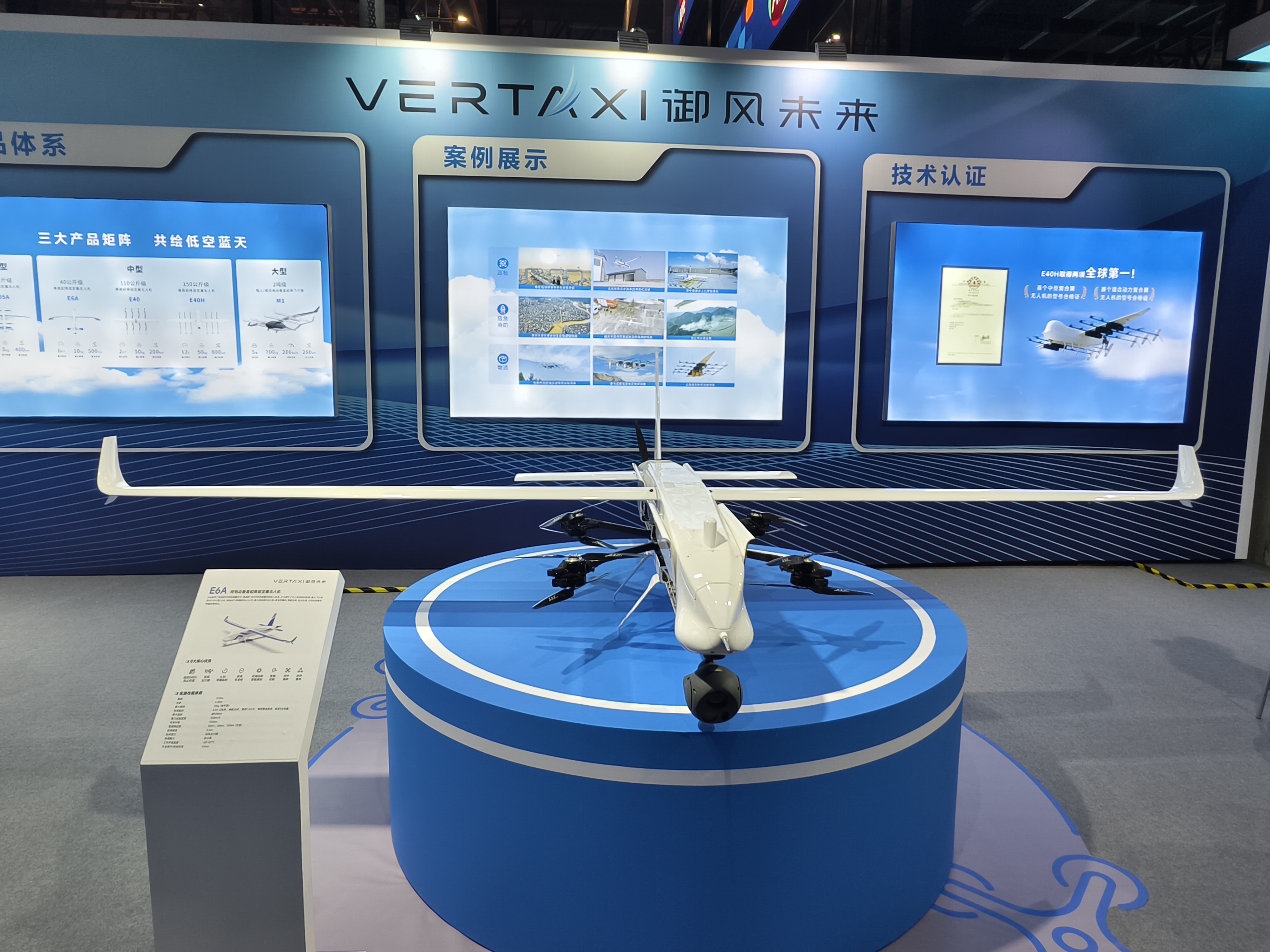 在展台的另一侧,御风未来还展示了40公斤级eVTOL产品E6A,该机型主要应用场景为森林防火、能源设施巡检、物流运输等。据工作人员介绍,全球最大石油公司已持续增购E6A eVTOL用于石油管道巡检。此前的人工油田检查,两名油田操作人员需要花费1小时左右才能检查两口油井。如今,使用这款飞行器,两名油田操作人员可以在4小时内完成70口油井的检查。