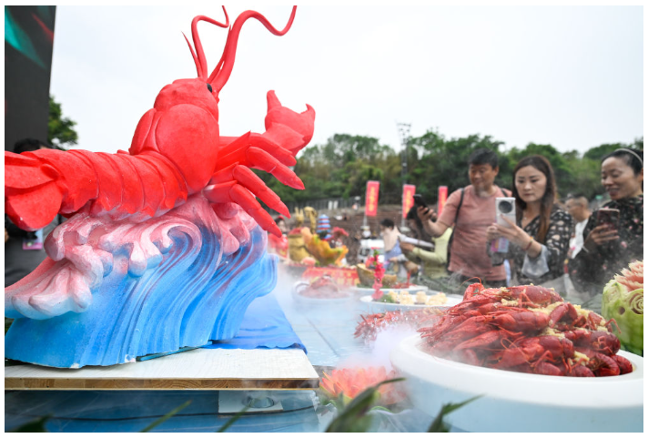 这是2025年6月12日在江苏省淮安市拍摄的第25届盱眙龙虾节欢乐龙虾宴现场。新华社记者 季春鹏 摄