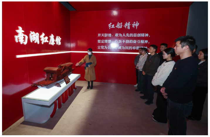 2026年1月28日,浙江省嘉兴市南湖区东栅街道机关党委组织青年党员干部参观南湖红廉馆。新华社记者 徐昱 摄