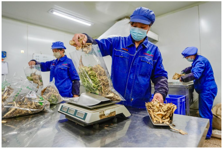 2026年1月26日,工作人员在宁夏固原市隆德县一家药材加工企业分包当归。新华社记者 杨植森 摄