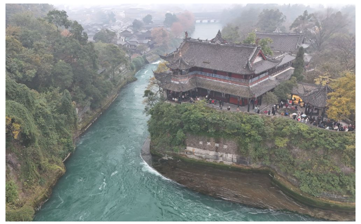 这是2025年12月6日拍摄的四川都江堰宝瓶口(无人机照片)。新华社记者 刘坤 摄