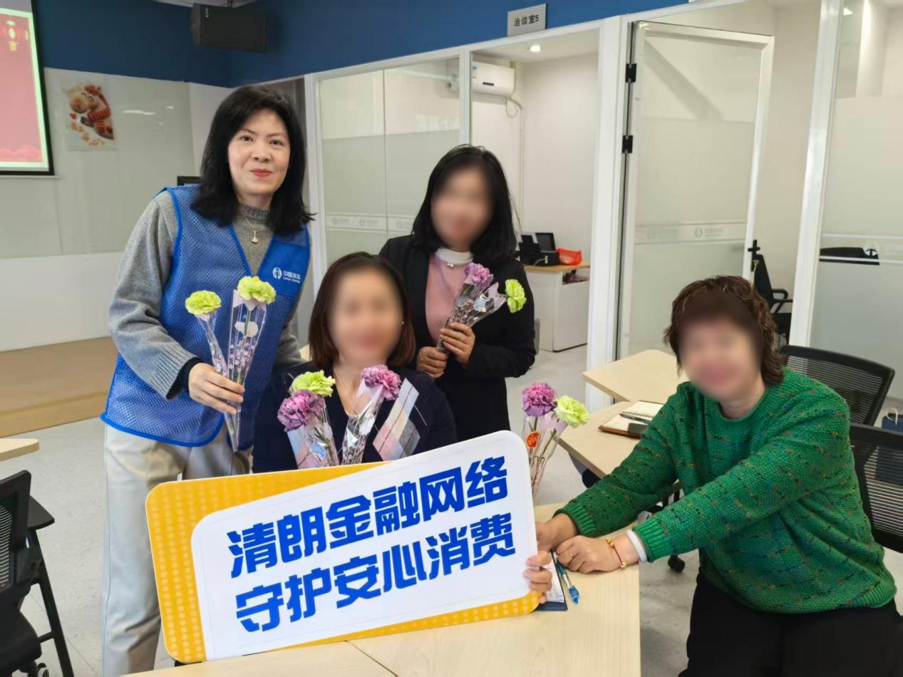 太平人寿东莞中心支公司结合“三八”国际妇女节,开展“清朗金融网络 守护安心消费”主题宣传。消保队伍向女性消费者及员工赠送康乃馨并发放宣传折页,内容涵盖防范诈骗、识别非法集资和倡导理性消费。活动通过耐心讲解,重点提示了数字化消费中个人信息保护与支付风险防范的重要性,有效提升了女性的金融风险防范意识和自我保护能力,将节日祝福与金融知识普及相结合。