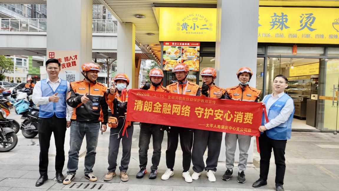 太平人寿肇庆中心支公司紧扣“两司两员”重点群体宣教要求,精准发力、多点布局,先后走进饿了么外卖骑手端州站点、鼎湖站点以及京东快递网点,面向奔波一线的外卖骑手、快递员开展专项金融消费者权益保护宣传活动,把贴心实用的消保知识送到新业态劳动者身边,用精准宣教筑牢基层群体消费安全屏障,彰显金融国企责任担当。